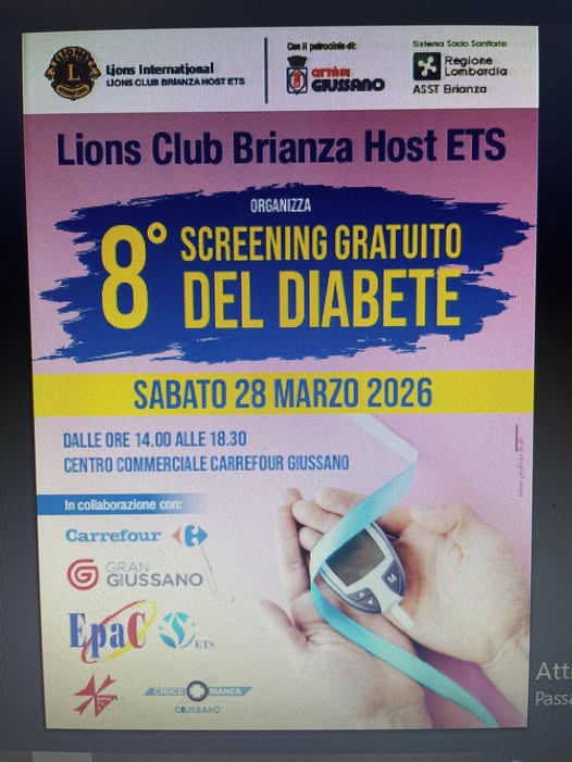 Si è svolta presso il Centro Commerciale “Gran Giussano” l’ottava edizione dello screening gratuito per il diabete, un’iniziativa nata dalla sinergia tra il Lions Club Brianza Host ETS, l’ASST Brianza e l’associazione EpaC-ETS.